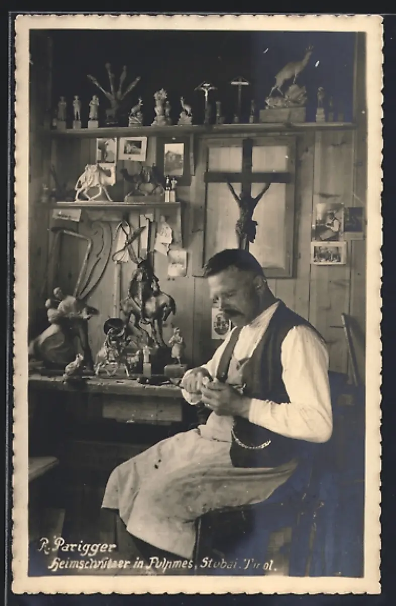 AK Fulpmes, Heim-Schnitzer R. Parigger bei der Arbeit