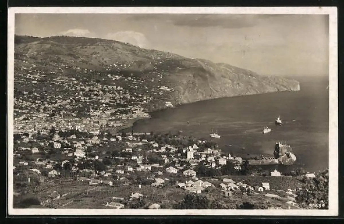 AK Funchal /Madeira, Fliegeraufnahme der Stadt