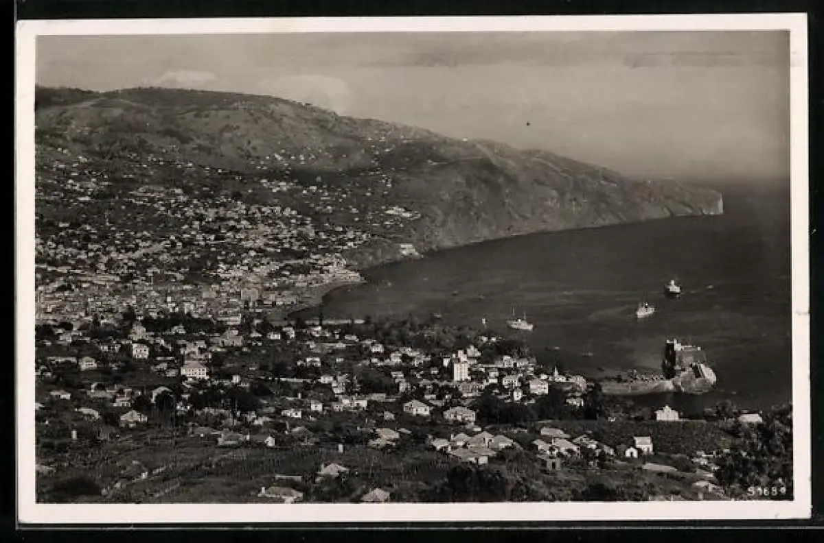AK Funchal /Madeira, Fliegeraufnahme der Stadt