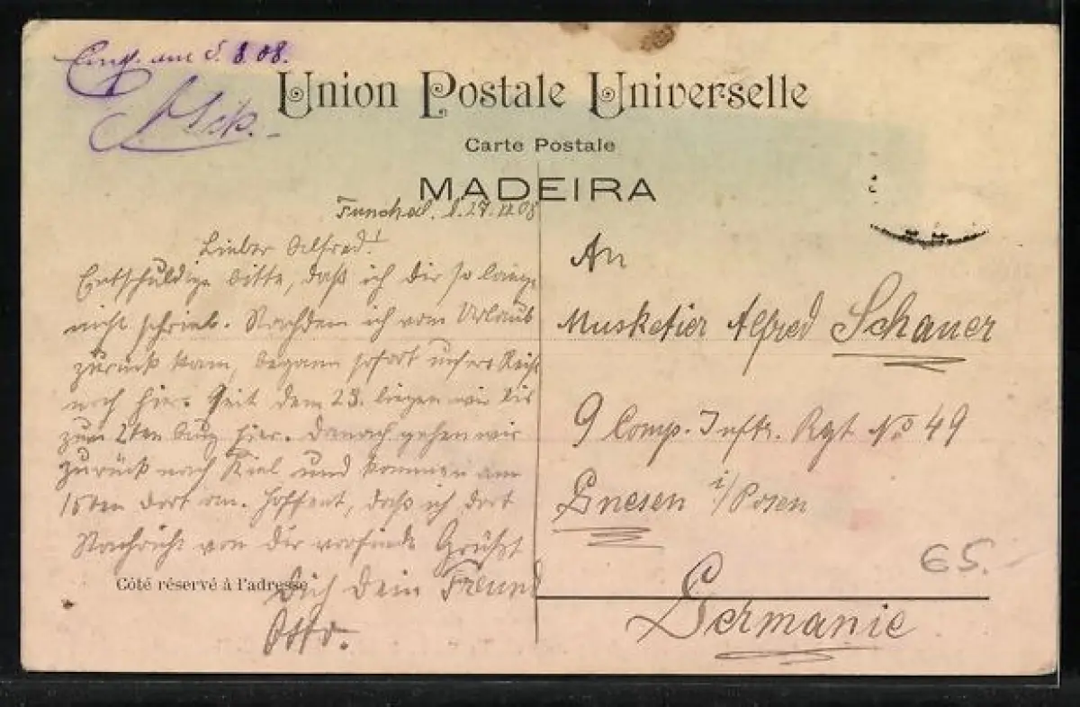 alte Ansichtskarte, gelaufen 1908, Briefmarke entfernt, Eckknick re. unten, guter Zustand