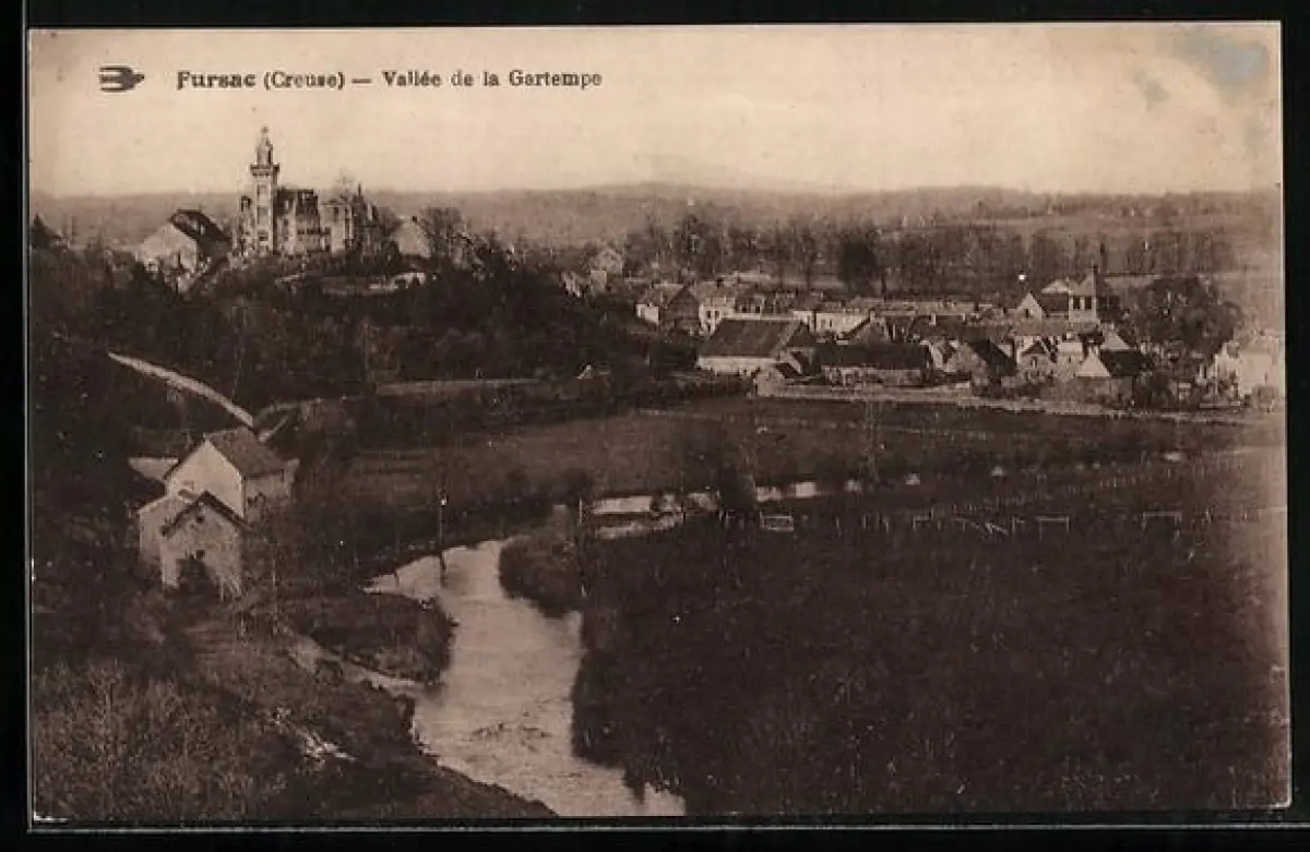 AK Fursac /Creuse, Vallée de la Gartempe et vue du village avec château en arrière-plan