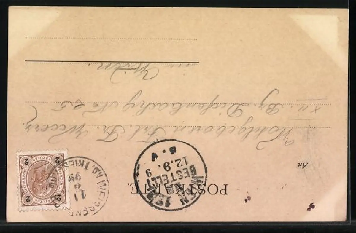 alte Ansichtskarte, gelaufen 1899, Stempelspur, Eckknick li. oben, guter Zustand