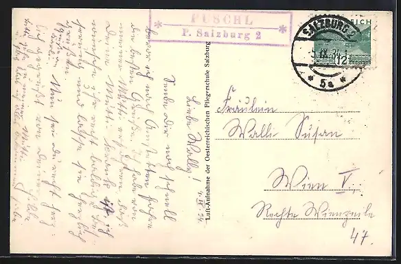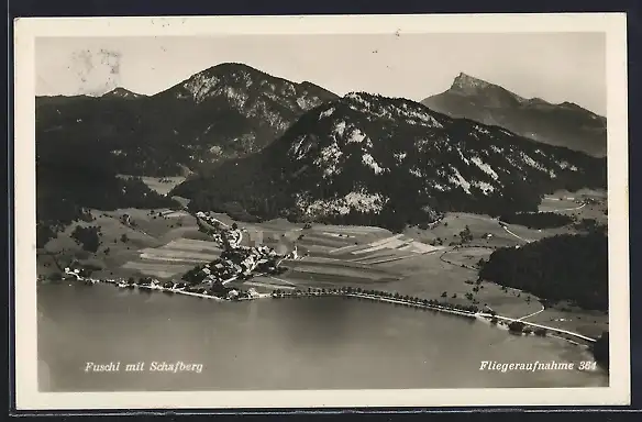 AK Fuschl, Ortsansicht mit Schafberg vom Flugzeug gesehen