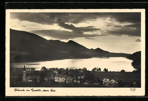 AK Fuschl am See, Ortstotale mit Kirche zur Abendstimmung