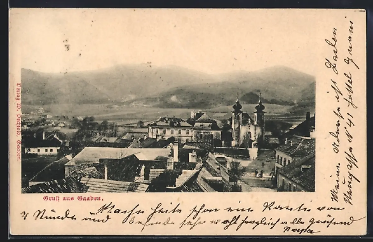 AK Gaaden, Totalansicht mit Kirche aus der Vogelschau