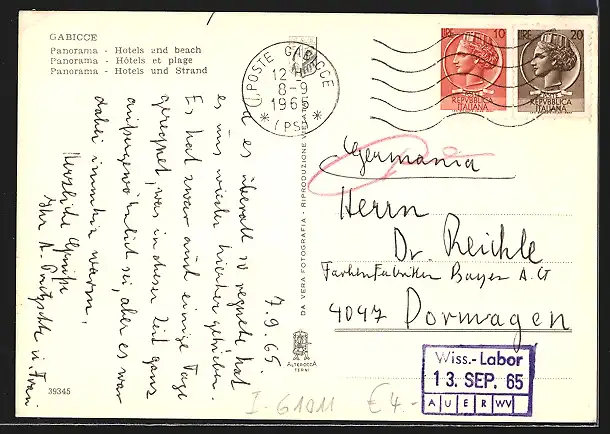 gelaufen 1965, Eckknick re. oben, guter Zustand