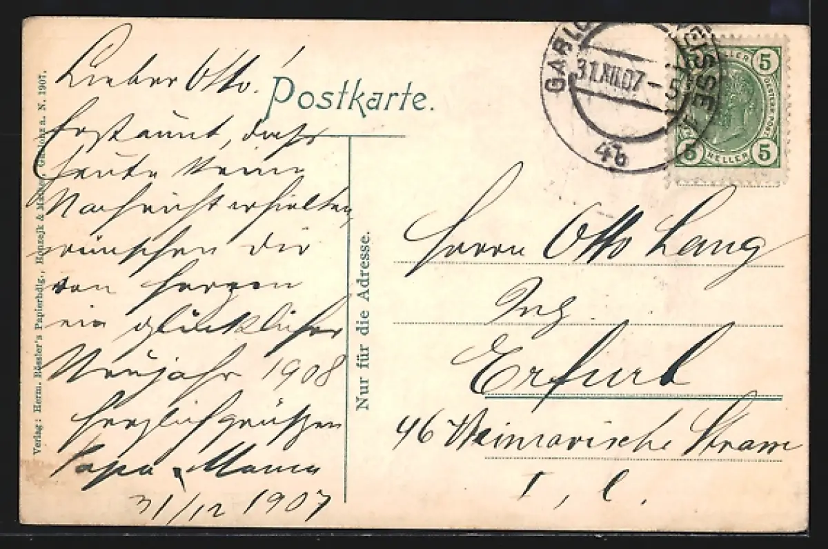 alte Ansichtskarte, gelaufen 1907, guter Zustand