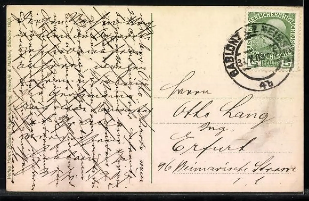 alte Ansichtskarte, gelaufen 1909, Abriebspur li. oben, guter Zustand