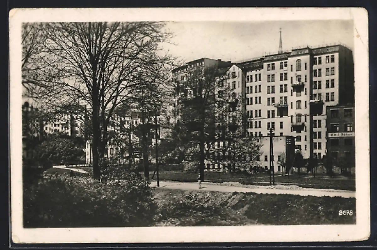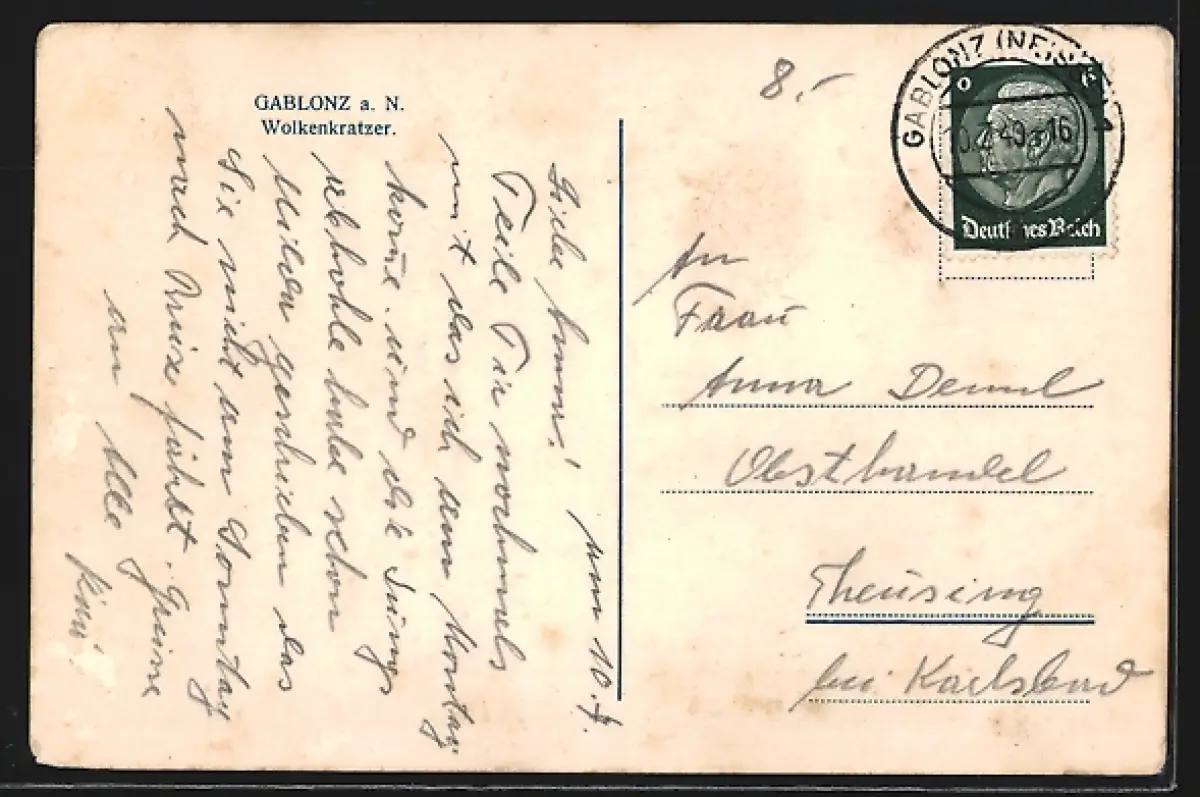 AK Gablonz a. N., Partie am Wolkenkratzer