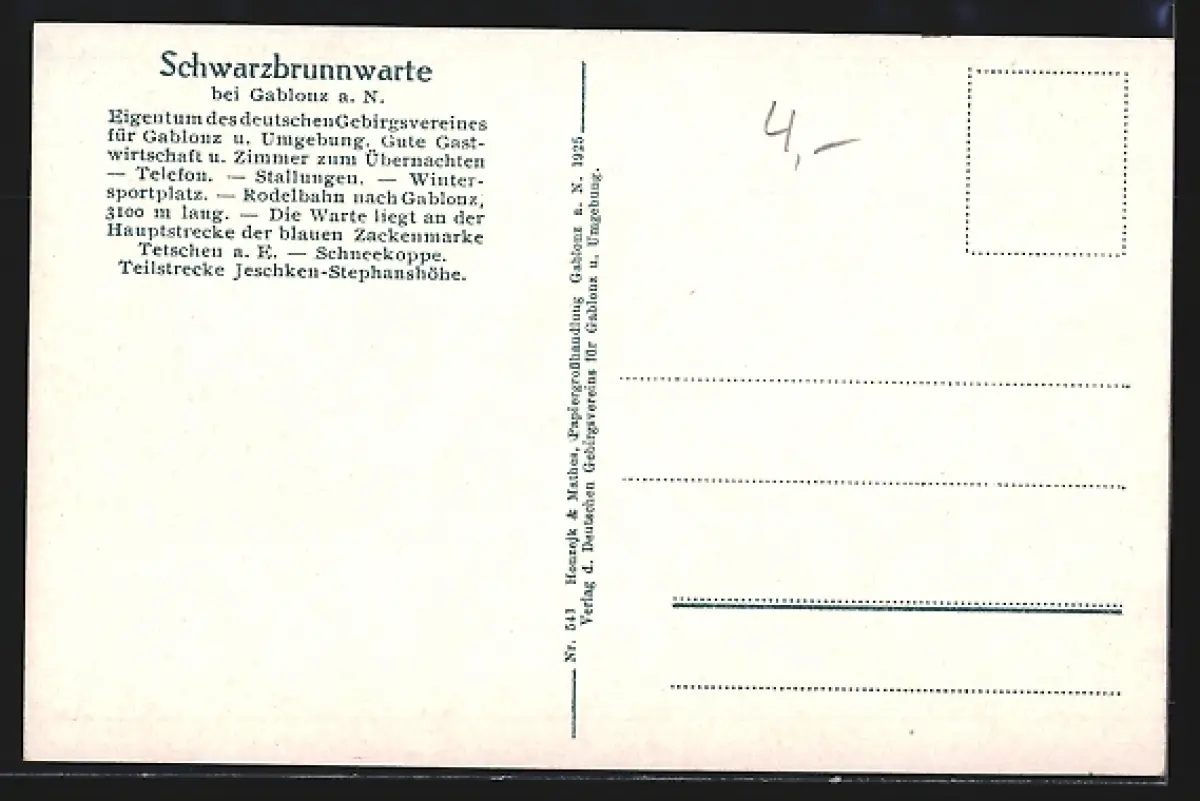 AK Gablonz a. N., Schwarzbrunnwarte auf der Schwarzbrunnkoppe