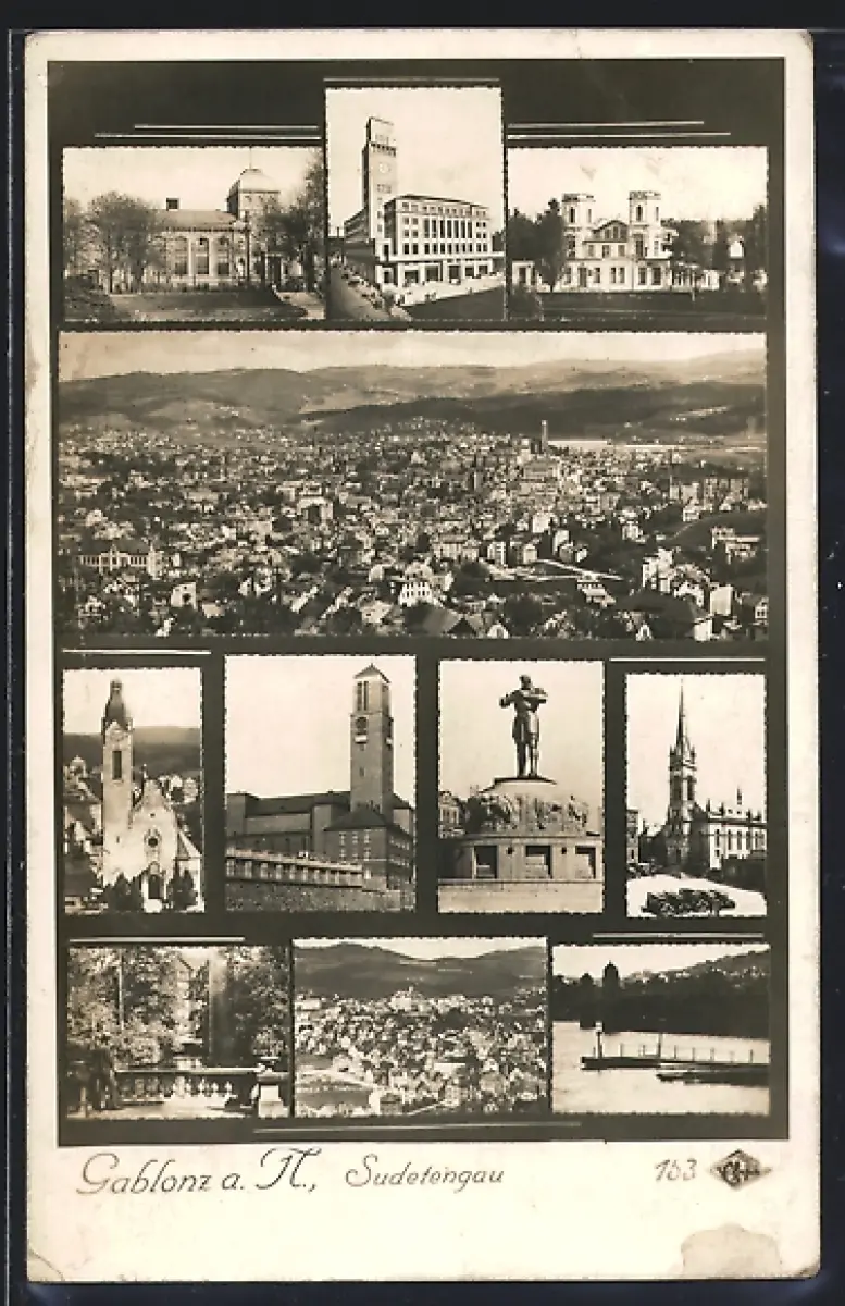AK Gablonz a. N., Stadtansicht, Kirche, Flusspartie