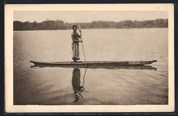 AK Gabon, Sur l`Ogooué, Afikaner im Boot, afrikanische Volkstypen