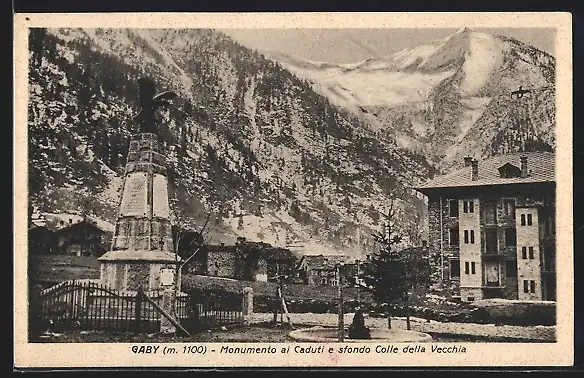 AK Gaby, Monumento ai Caduti e sfondo Colle della Vecchia