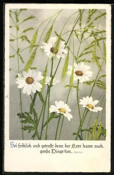AK Gänseblumen, Sei fröhlich und getrost, denn der Herr kann auch grosse Dinge tun, Jael 2.21, Sinnspruch