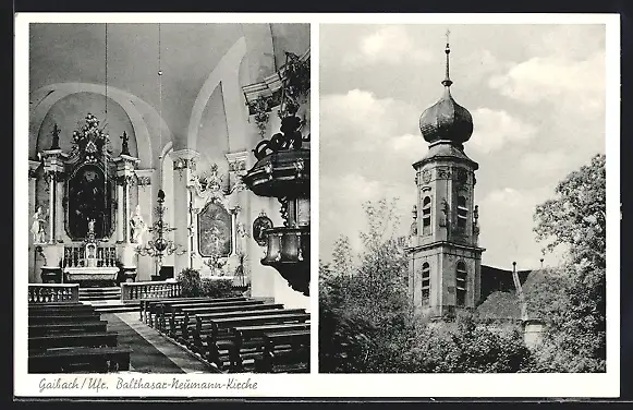 AK Gaibach / Ufr., Balthasar-Neumann-Kirche, Aussen- und Innenansicht