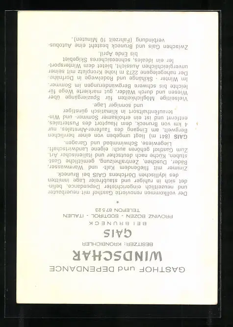AK Gais bei Bruneck, Gasthof und Dependance Windschar