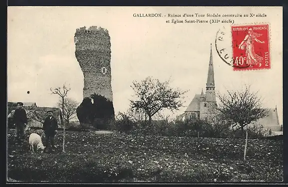AK Gallardon, Ruines d`une Tour féodale et Église Saint-Pierre (XIIe siècle)