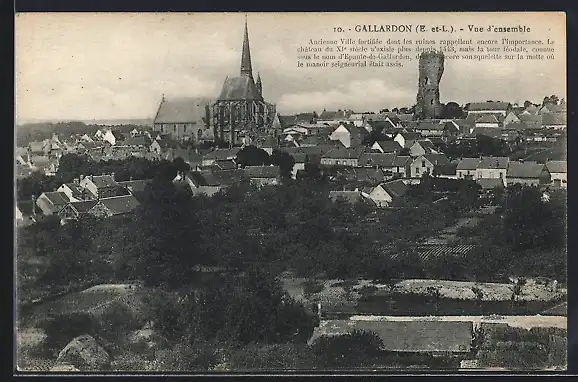 AK Gallardon, Vue d`ensemble de la ville avec l`église et le vieux donjon