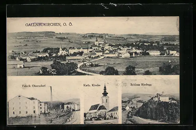 AK Gallneukirchen /O. Ö., Fabrik Oberndorf, Katholische Kirche, Schloss Riedegg