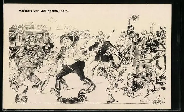 AK Gallspach, Abfahrt, Reisende mit Auto und Motorrad