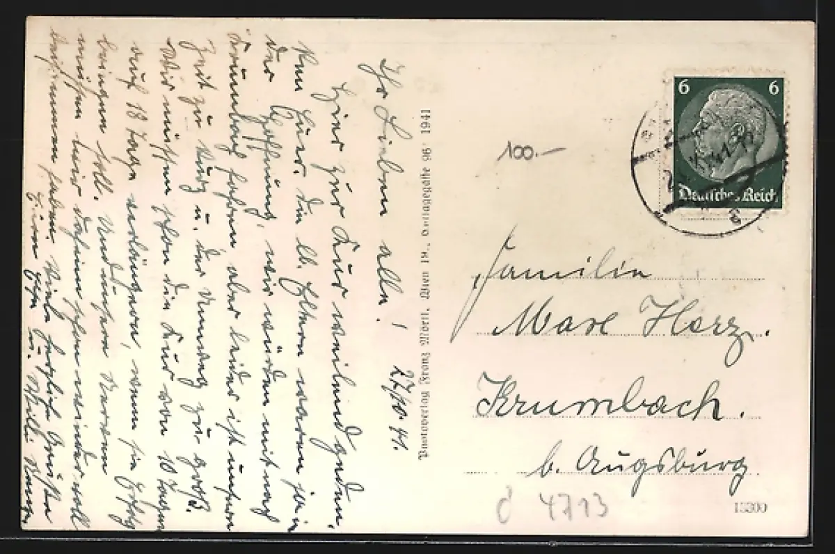 alte Ansichtskarte, gelaufen 1941, Stempelspur, guter Zustand