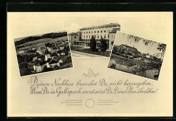 AK Gallspach, Teilansicht mit Kirche, Gebäudeansicht, Uferpartie