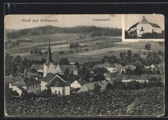 AK Gallspach, Totalansicht mit Kirche und Schloss Zeileis