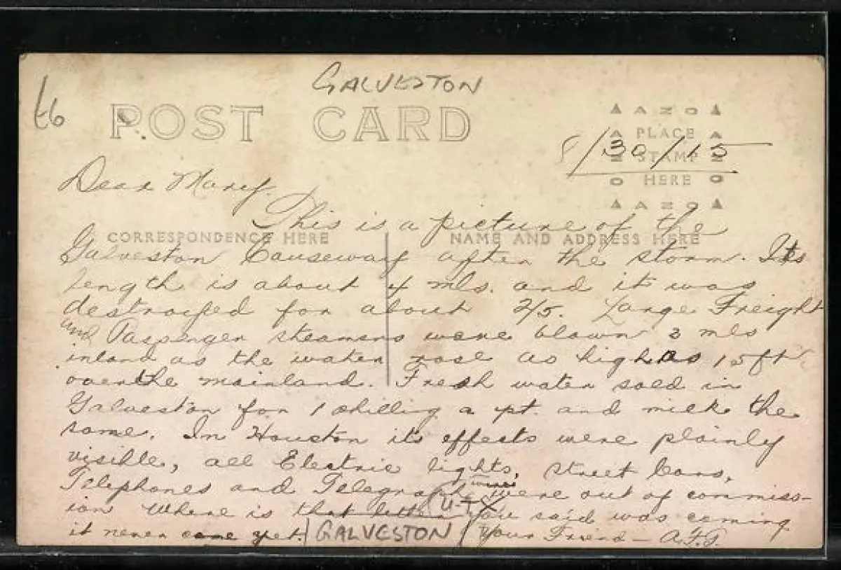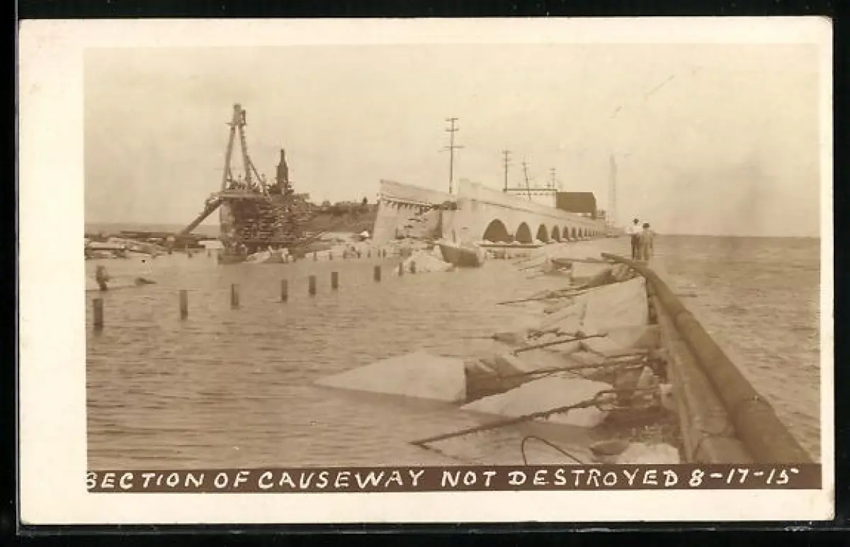AK Galveston, TX, Section of Causeway not destroyed 1915