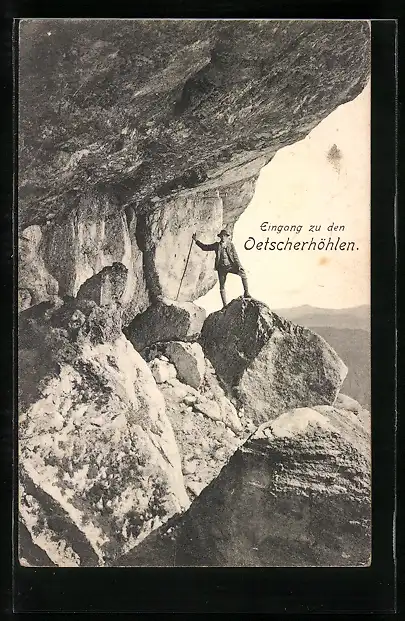 AK Gaming /N.-Oe., Wanderer am Eingang zu den Oetscherhöhlen