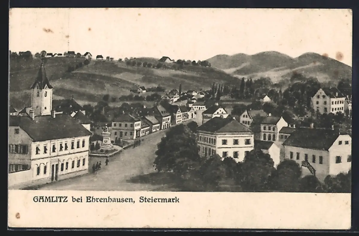 AK Gamlitz, Ortsansicht mit Strasse aus der Vogelschau