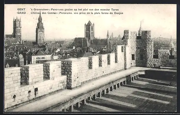 AK Gand, Chateau des Comtes: Panorama, vue prise de la plate forme du Donjon