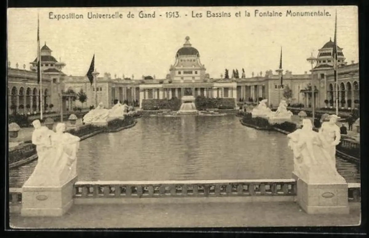 AK Gand, Exposition Universelle 1913, Les Bassins et la Fontaine Monumentale, Ausstellung
