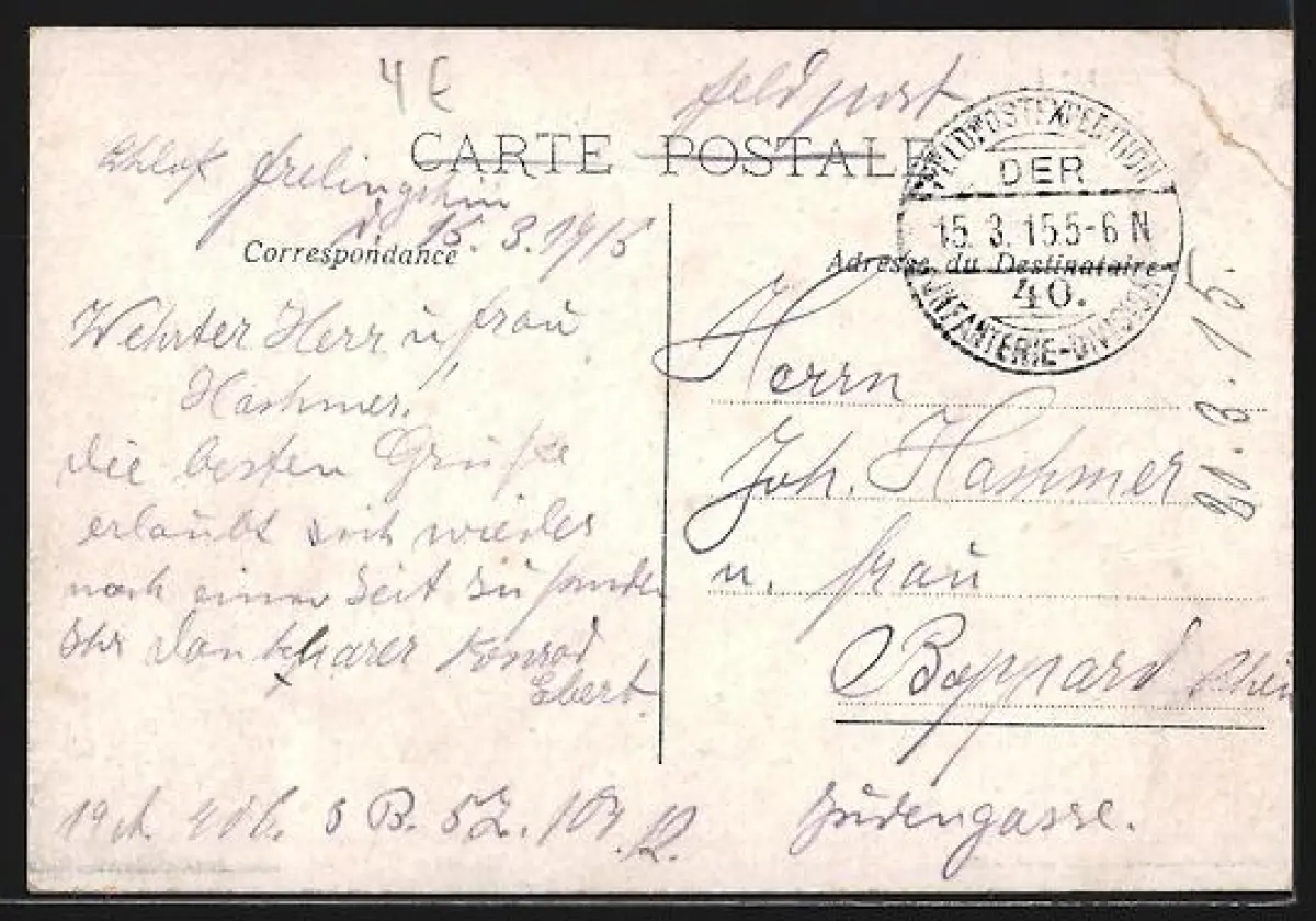 alte Ansichtskarte, gelaufen 1915, Eckknick li. oben, guter Zustand