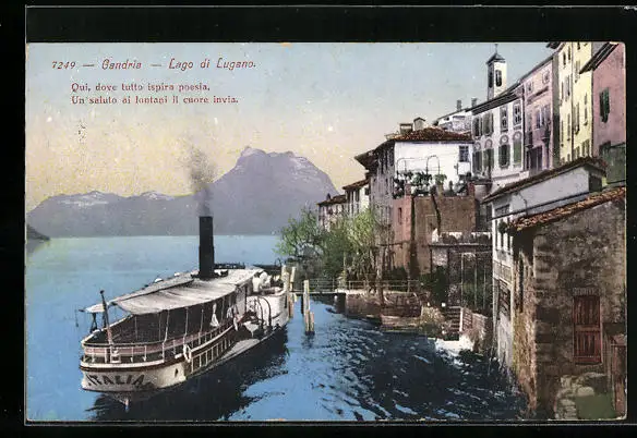AK Gandria, Der Dampfer Italia verlässt den Ort am Lago di Lugano