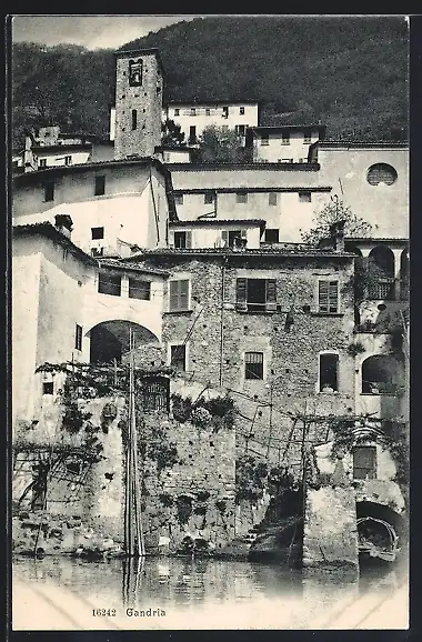 AK Gandria, Teilansicht auf die Wohnhäuser vom Wasser aus