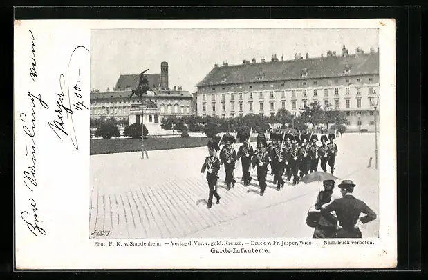 AK Garde-Infanterie marschiert auf der Strasse einer Stadt