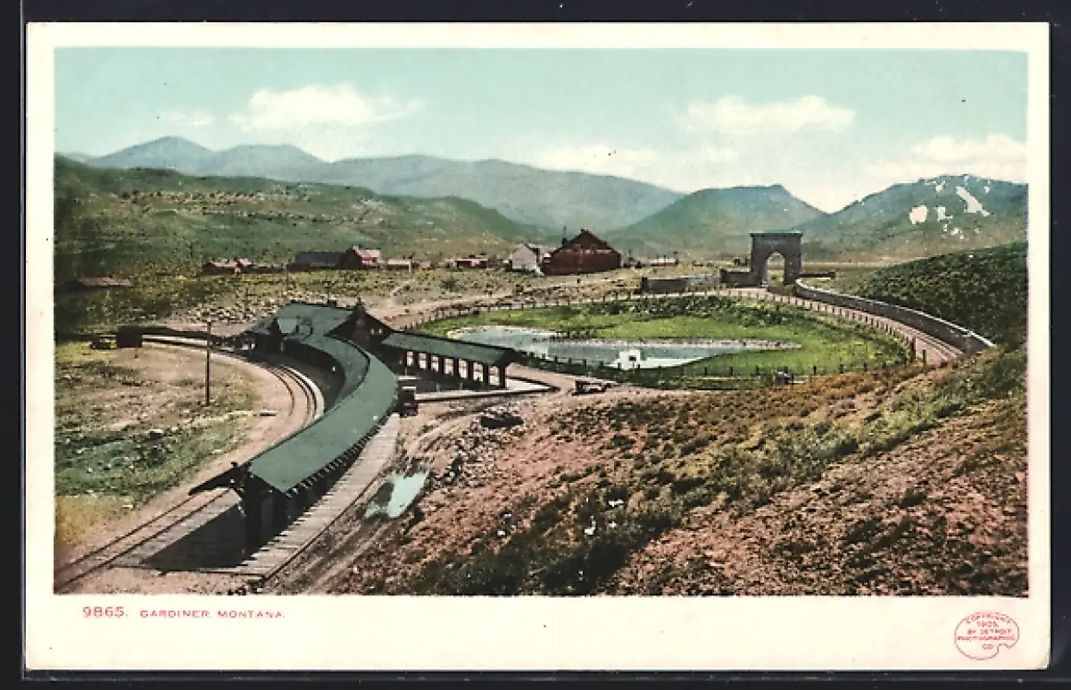 AK Gardiner, MT, Ortsansicht mit Bahnhof