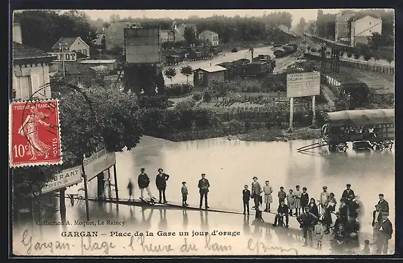 AK Gargan, Place de la Gare un jour d`orage
