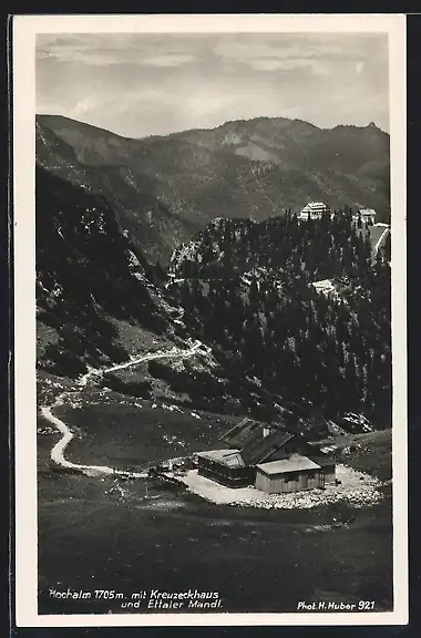 AK Garmisch, Hochalm mit Berggasthaus Kreuzeckhaus und Ettaler Mandl