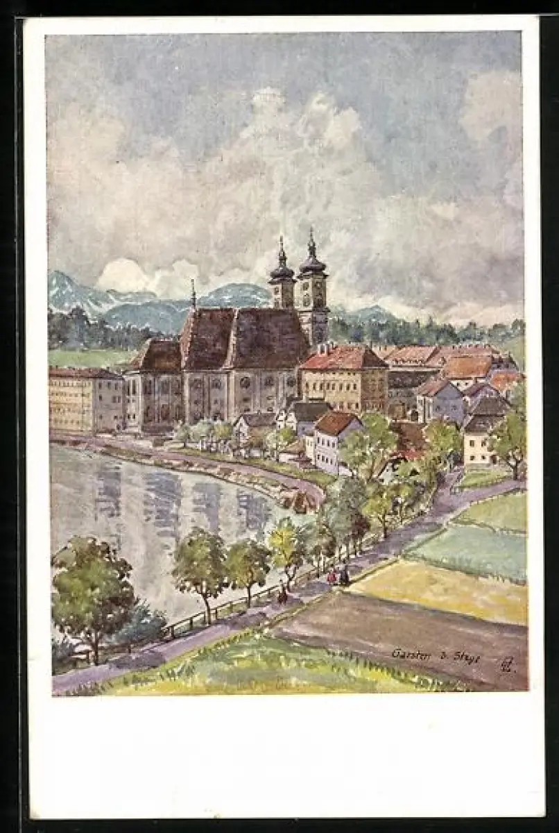 AK Garsten bei Steyr, Ortsansicht aus der Vogelschau