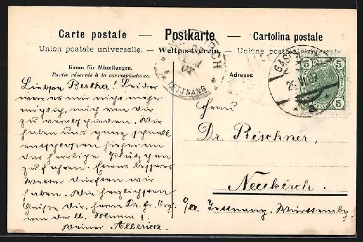 alte Ansichtskarte, gelaufen 1907, Stempelspur, guter Zustand