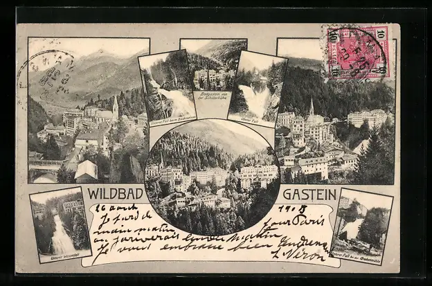 AK Gastein, Badgastein von der Schillerhöhe, oberer & unterer Fall