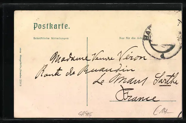 alte Ansichtskarte, gelaufen, Briefmarke entfernt, Stempelspur, guter Zustand
