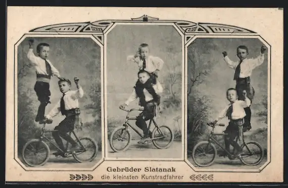 AK Gebrüder Slatanak die kleinesten Kunstradfahrer