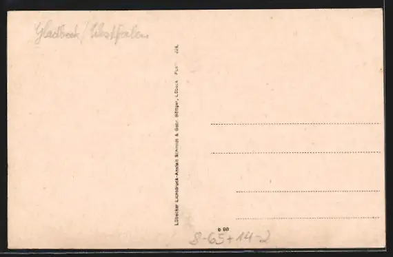 Personenbezogene Daten auf der Rückseite der Karte wurden durch blauen Textmarker unkenntlich gemacht. Die blauen Stellen sind auf die Vorderseite durchgeweicht und wirken sich negativ auf das Postkartenfoto aus