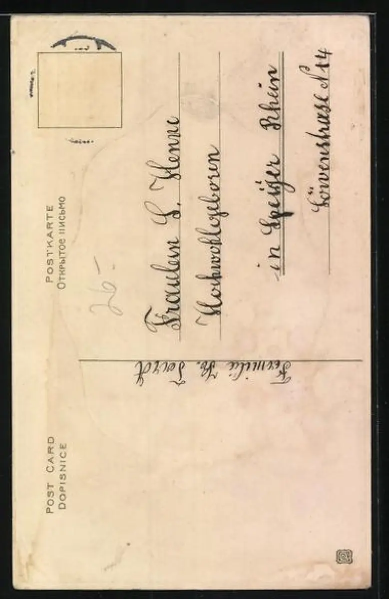 alte Ansichtskarte, gelaufen, Briefmarke entfernt, Stempelspur, guter Zustand