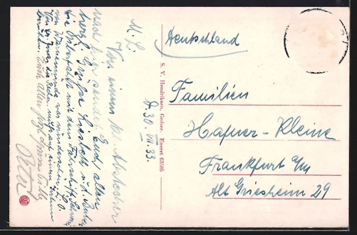 alte Ansichtskarte, gelaufen 1933, Briefmarke entfernt, Albumspuren, guter Zustand