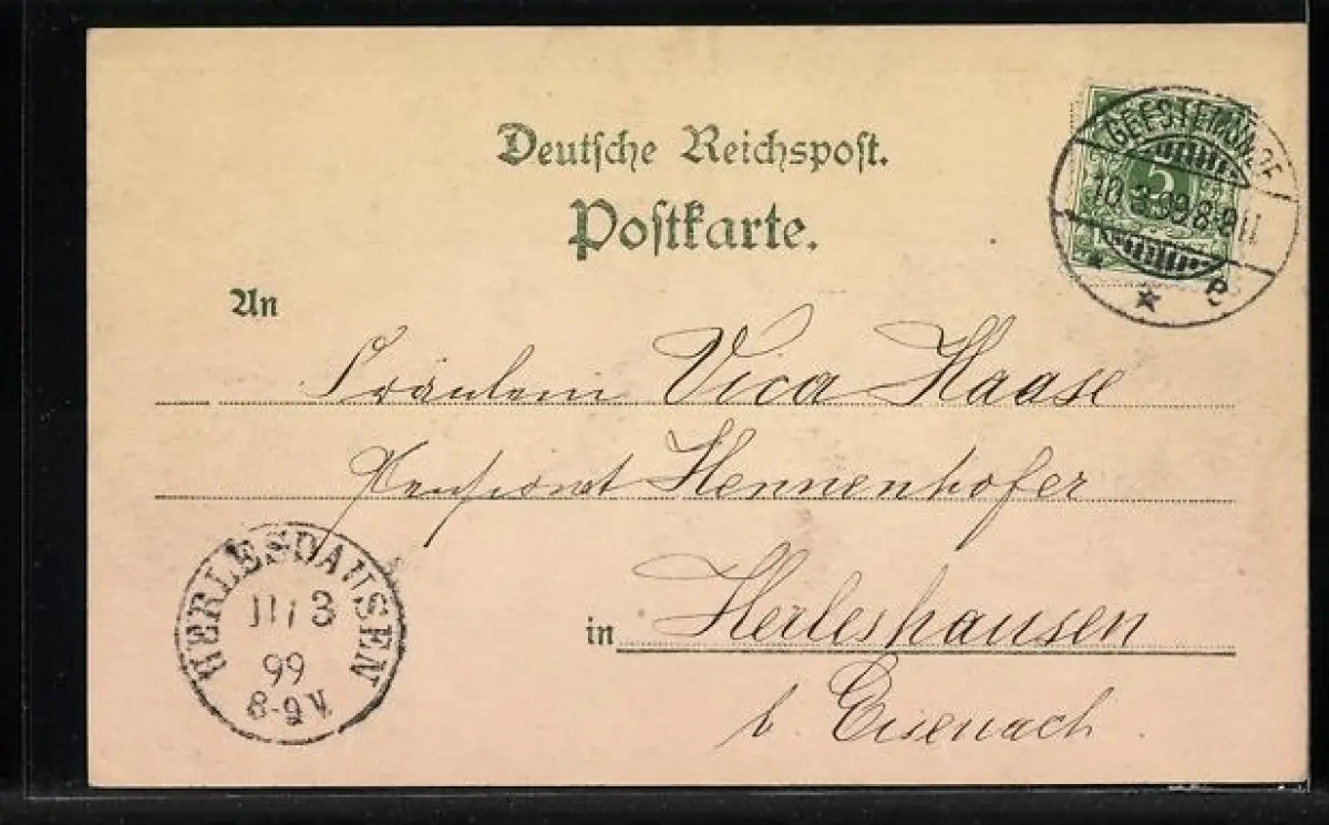 alte Ansichtskarte, gelaufen 1899, Stempelspur, guter Zustand