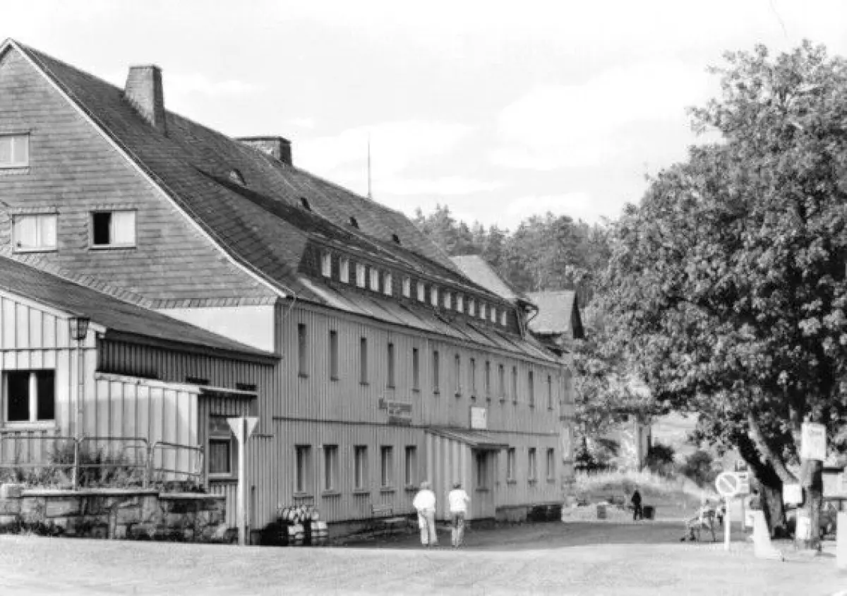 Ansichtskarte Gehlberg Kr. Suhl Betriebsferienheim Schmücke des VEB Leichtmetallkombinat Calbe Erhaltung II, Eckbug oben rechts ungelaufen Druckvermerk: 1978 Herstellungsland: DDR Verlag: Bild und Heimat, Reichenbach i. V. - 01 11 08 296