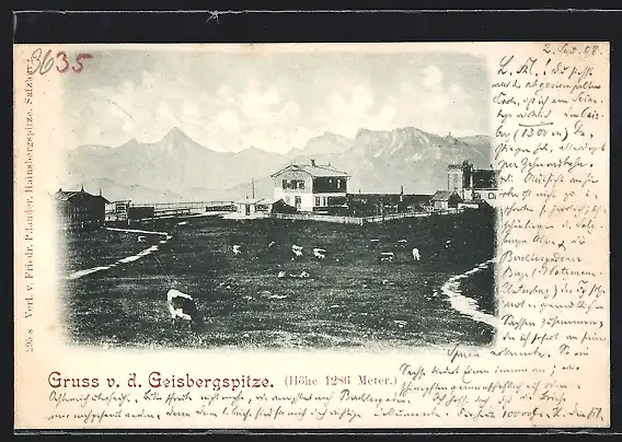 AK Geisberg, Hotel Geisbergspitze mit Bergpanorama